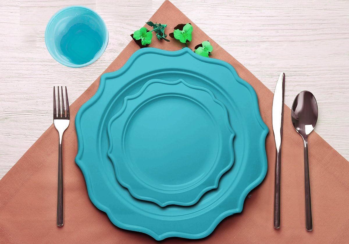 PRICE DROP on these Tiger Chef 96-Pack Turquoise Color Round Scalloped Rim Disposable Plastic Plate Set for 48 Guests to just $19.99 – 5% coupon on the product page = just $18.99 with FREE Prime shipping or free shipping with $35 purchase on Amazon. BEST PRICE!
