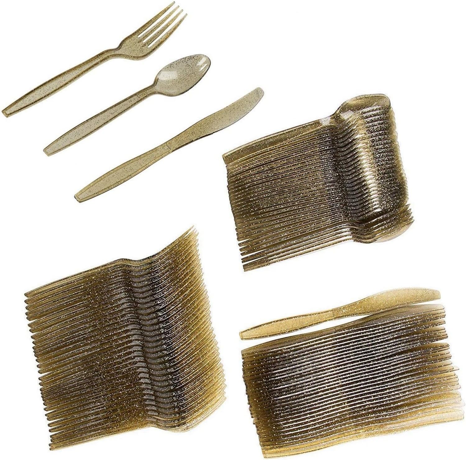 Juvale Gold Silverware Set – Plastic Cutlery with Glitter Finish, 144 Pieces for just $6.70!
