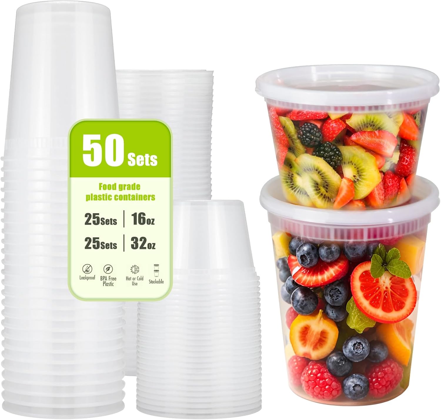 EVEN LOWER! Amazon is offering this [50 Sets] Deli Containers With Lids [16, 32oz 25 Each] for just $11.99 $12.99 with FREE Prime shipping or free shipping with $35 purchase on Amazon!