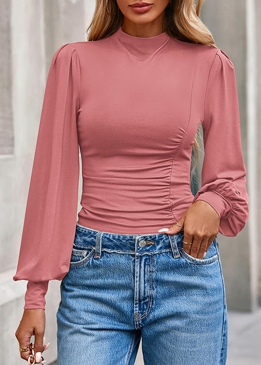 Amazon has this KIRUNDO Going Out Tops for Women Puff Long Sleeve Mock Neck Ruched Shirt for $25.99 – 50% automatically with promo code FU7MOOOF = just $12.99 with FREE Prime shipping or free shipping with $35 purchase!