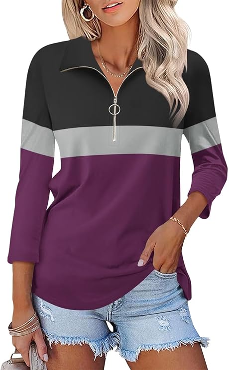 Minetom Women's V Neck 3/4 Sleeve Tops Quarter Zip Collared Shirts Polo Shirts Summer TeesMinetom Women's V Neck 3/4 Sleeve Tops Quarter Zip Collared Shirts Polo Shirts Summer Tees