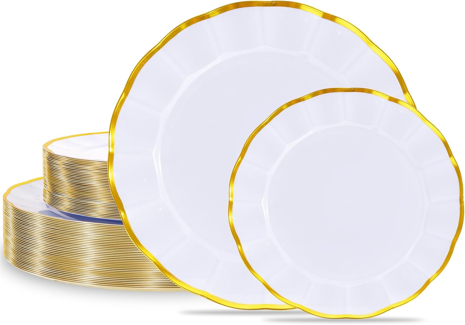 150Pcs Plastic Plates with Gold Rim,Heavy Duty White Plates for 30 Guests,Plastic Dinnerware Set Include 30 Dinner Plate,30 Dessert Plate,90 Gold Cutlery Set as low as $24.69!