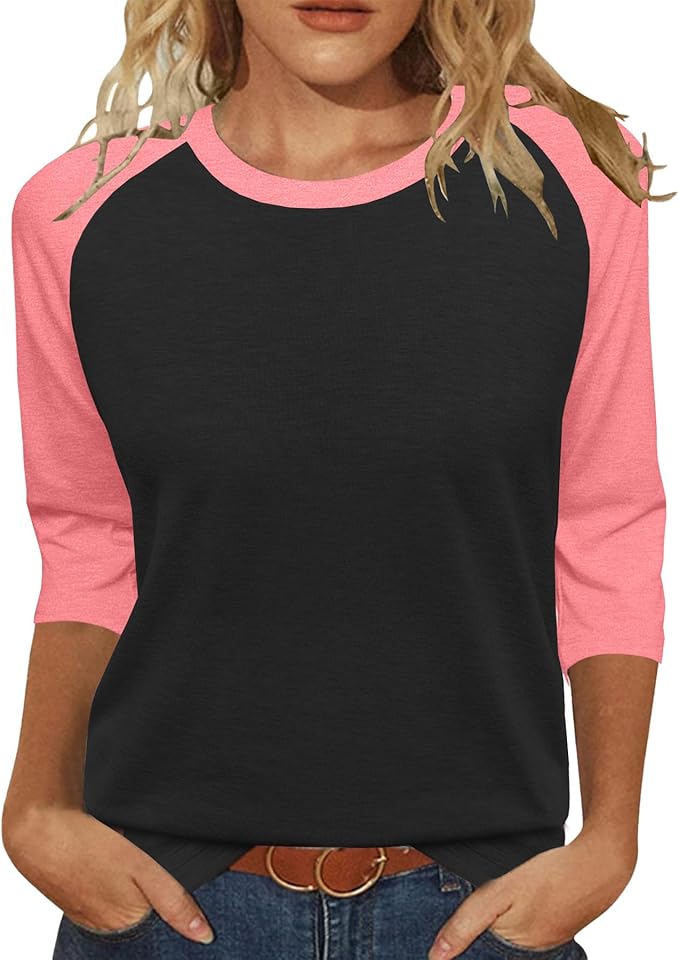 XIEERDUO Womens T Shirts 3/4 Length Sleeve Womens Tops Dressy Casual Crew Neck Color Block Tunic Tops just $11.99! Sizes S-XXL