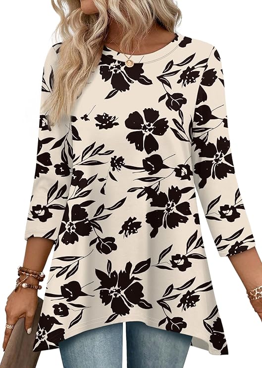OFEEFAN Tunic Tops for Women Loose Fit Dressy 3/4 Length Sleeve Womens Tops with Asymmetrical Hem S-4XL just $9.99 – $12.99!