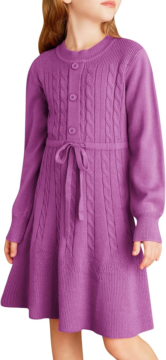 GRACE KARIN Girls Sweater Dress Fall Winter Long Sleeve Kids Fashion Drawstring Waist Cable Knit Dresses Size 5-12 just $24.63 after Coupon!