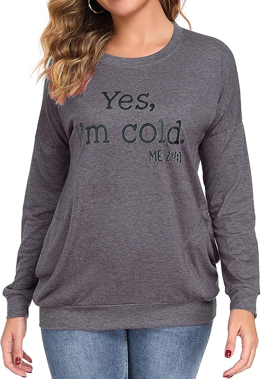 *HOT!* Amazon – Womens Yes I’m Cold Sweatshirts with Pockets Crewneck Long Sleeve just $9.89 after 45% Promo Code! Multiple Colors, Sizes S-XXL