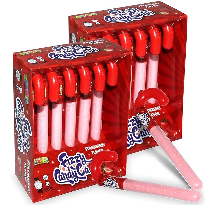 Zazers Fizzy Candy Cane, 12 Blue Raspberry Powder Candy Cane, 6 Pieces in Each Box-Pack of 2
