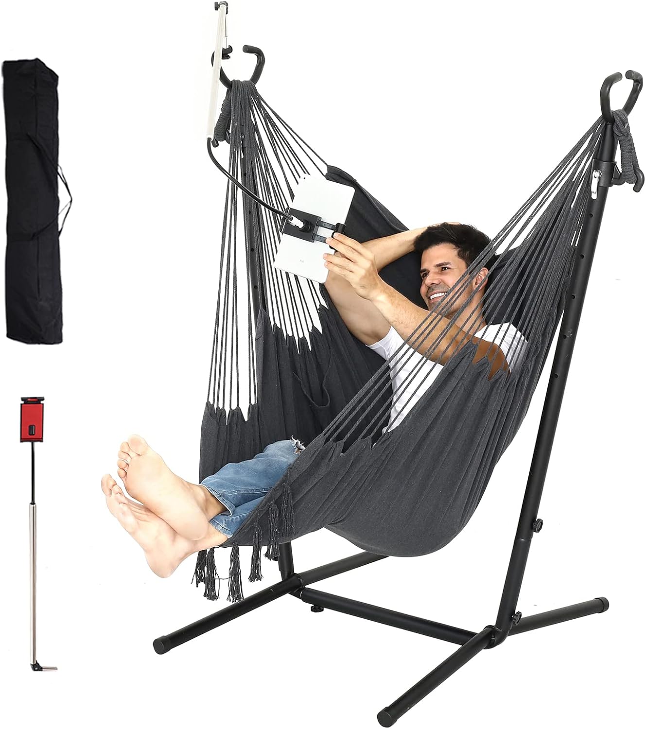 Amazon has this Hammock Chair with Stand and Foot pad for just $59.99 after DOUBLE DISCOUNT on Amazon with FREE (Prime) Shipping!