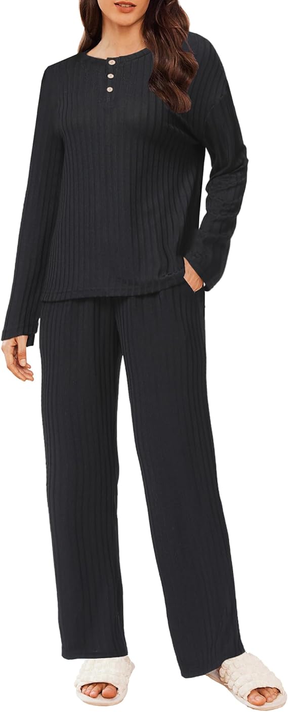 *GREAT PRICE!* Amazon – Ekouaer Womens Ribbed Knit Lounge Set Long Sleeve Henley Neck Top and Long Pants Two Piece Soft Sleepwear just $9.94 after 50% Promo Code! Multiple Colors, Sizes S-XXL