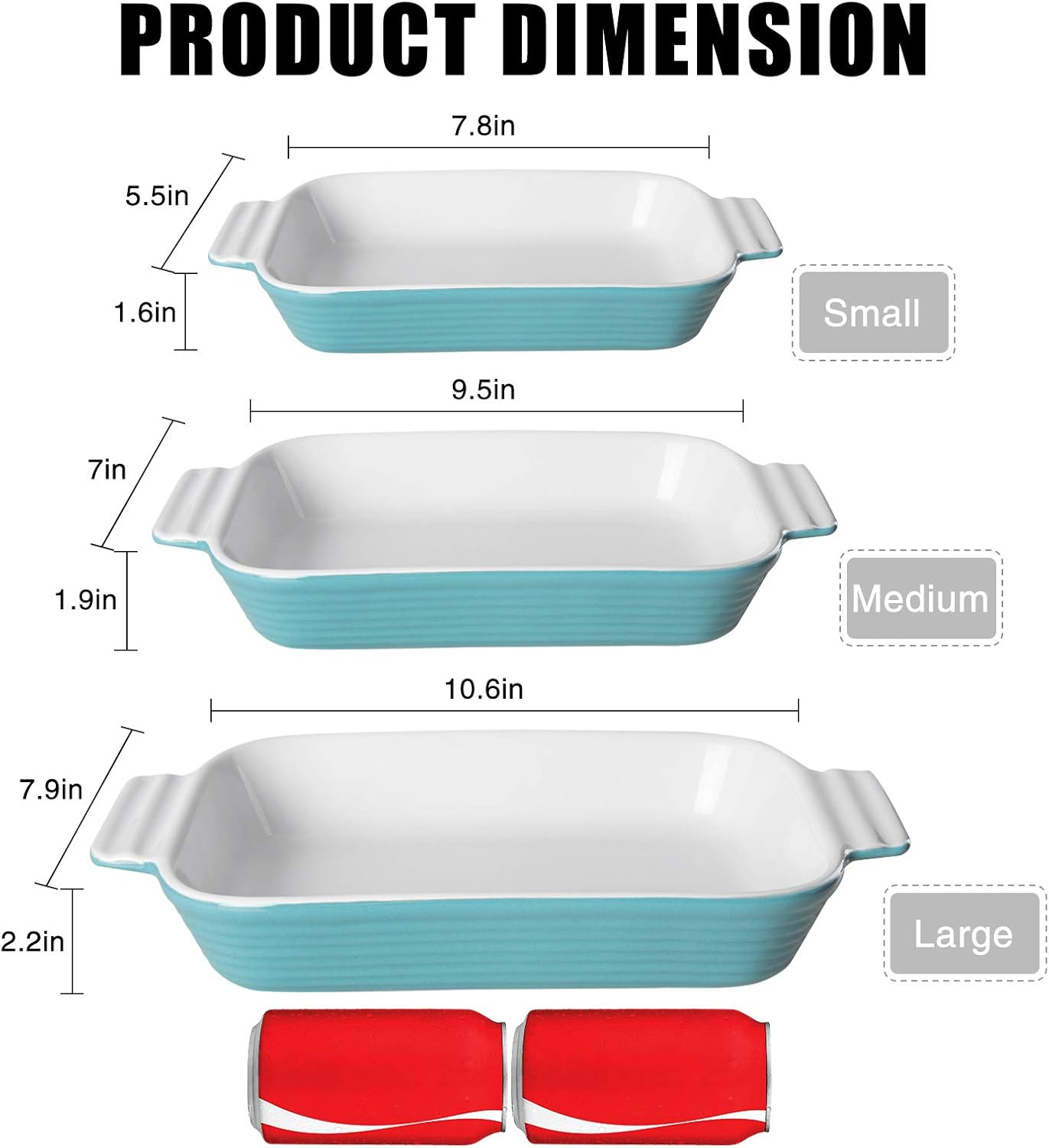 Good Size For Daily Use:The baking tray set includes 3 different sizes of bakeware (including the size of the ears): 14″ L x 8.9″ W x 2.8″ H and 10.6″ L x 6.3″ W x 2.4″ H and 8″ L x 5″ W x 2″ H, including 4 ramekins of the same size: 2.8″ L x 2.8″ W x 2″ H. so you can make bulk batches of oven-baked goodies.