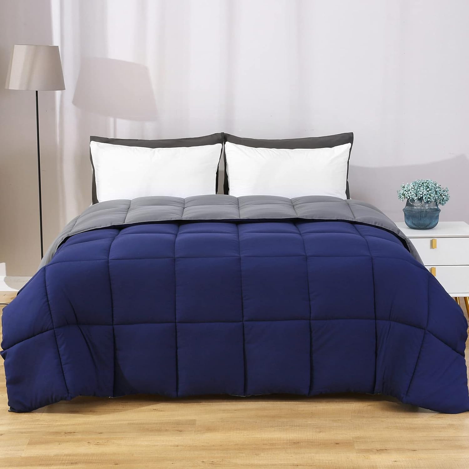 Grab this DOWNCOOL Reversible Down Alternative Blanket Comforter-All Season Ultra Soft Duvet Insert 4 Loops-Box Stitched- Machine Washable-Blue/Gray-Twin on Amazon for $44.98 – 70% with promo code 70ELKBRY = just $13.49 with FREE (prime) shipping!