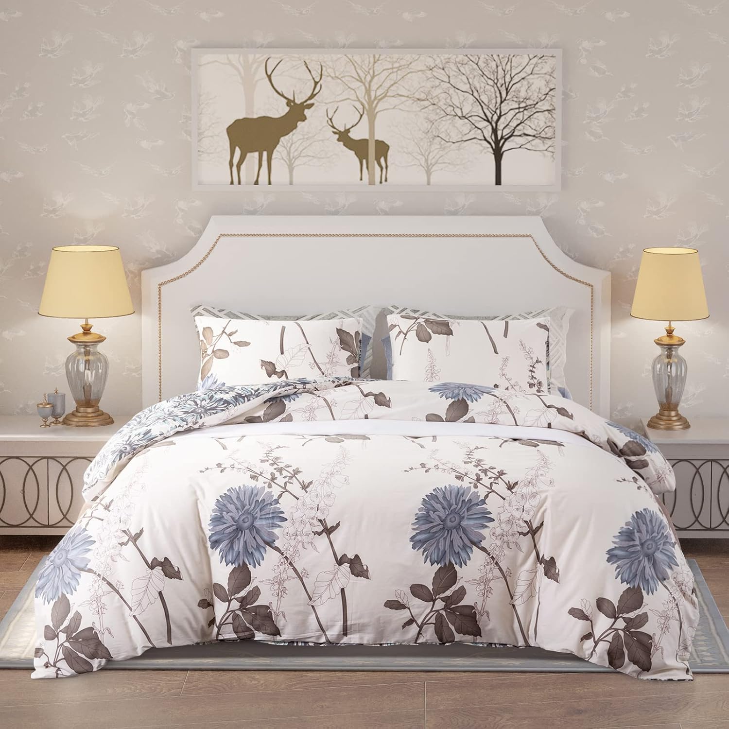 1. Go to the product page for SIGOODS Floral Duvet Cover Sets Twin Size, Soft Botanical Garden Pattern 100% Organic Cotton Comforter Cover, Girl Reversible Bedding Set with Zipper Closure & Corner Ties (Grey Blue Flower, 2 Pieces) at $42.99