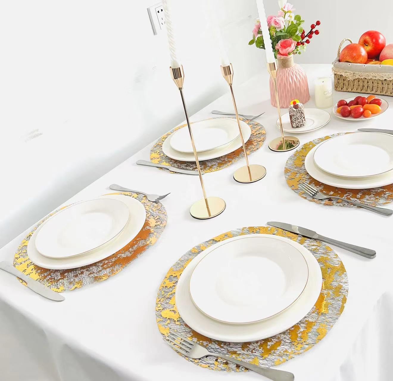 100 Pcs Gold Placemats, 13 Inch Round Disposable Placemats Gold Foil Mesh Pressed Table Mats as low as $16.42 with S&S, just $17.28 one-time purchase