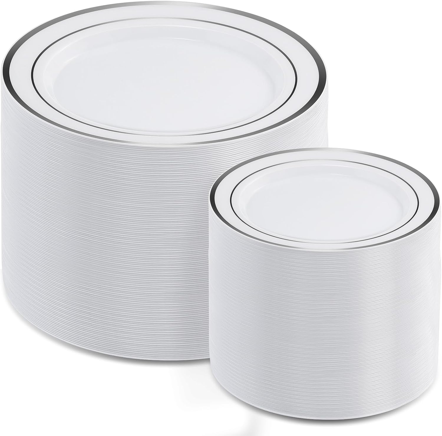 I00000 200 Pcs White and Gold Plastic Plates, Disposable Plastic Plates for 100 Guests Include: 100 Pcs Dinner Plate 10.25” and 100 Pcs Dessert Plate 7.5” for as low as $32.67 + FREE Shipping with Subscribe & Save and 5 active monthly subscriptions!