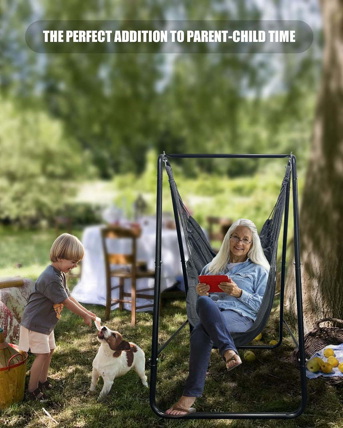 Super deal on this Hammock Chair with Stand Including Large Hanging Indoor Swing with 2 Cushions, Hammock Swing Chair with Stand, Max 450 Lbs, Grey Color on Amazon at $109.99 – 50% with promo code 50LMJQEB = just $54.99 with FREE (Prime) Shipping!