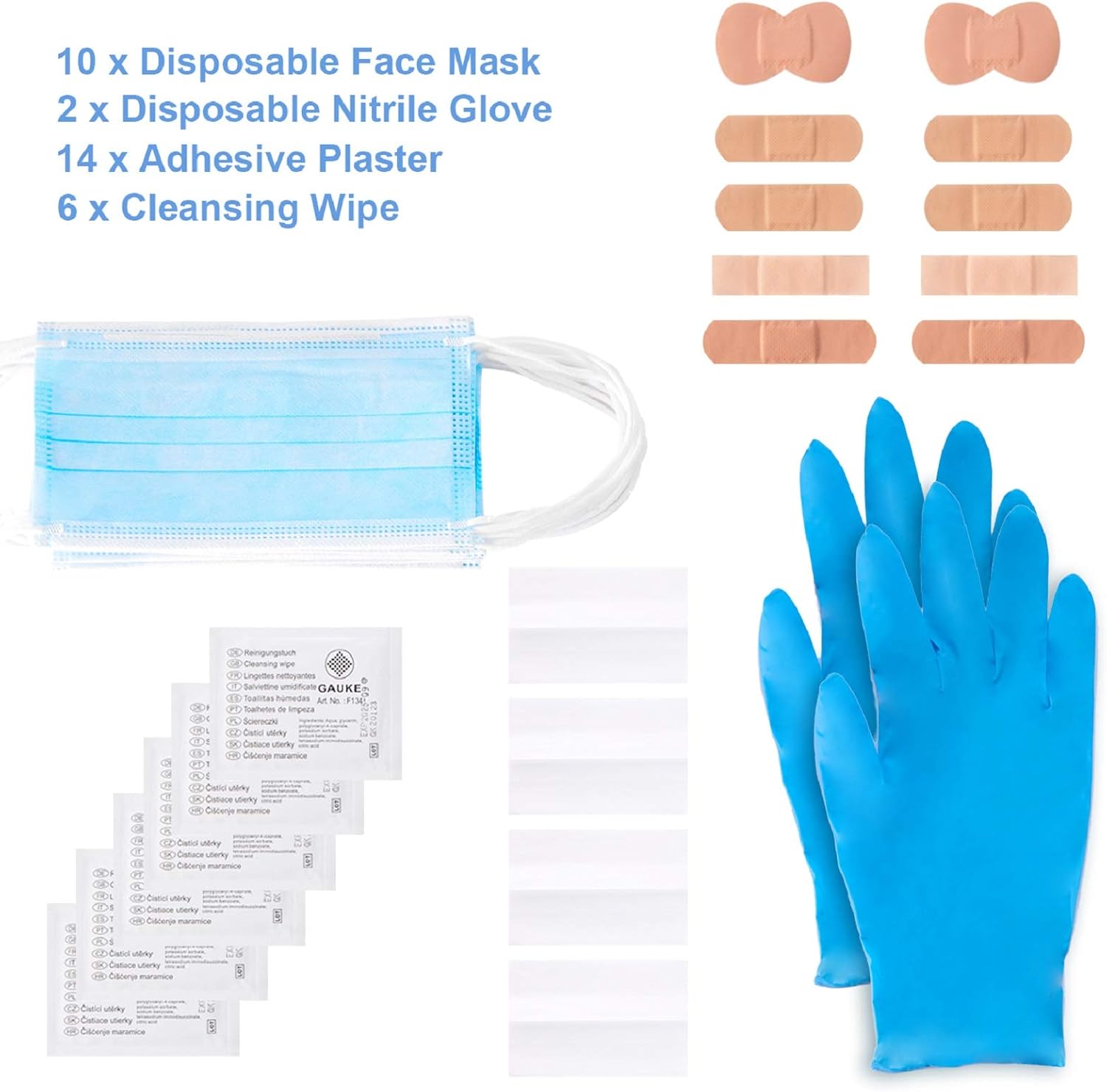 Amazon – GAUKE Nitrile Glove and Mask Kit, Contains 10 Disposable Masks, 10 Disposable Gloves, 14 Adhesive Plasters, 6 Cleaning Wipes just $2.99 after Promo Code!