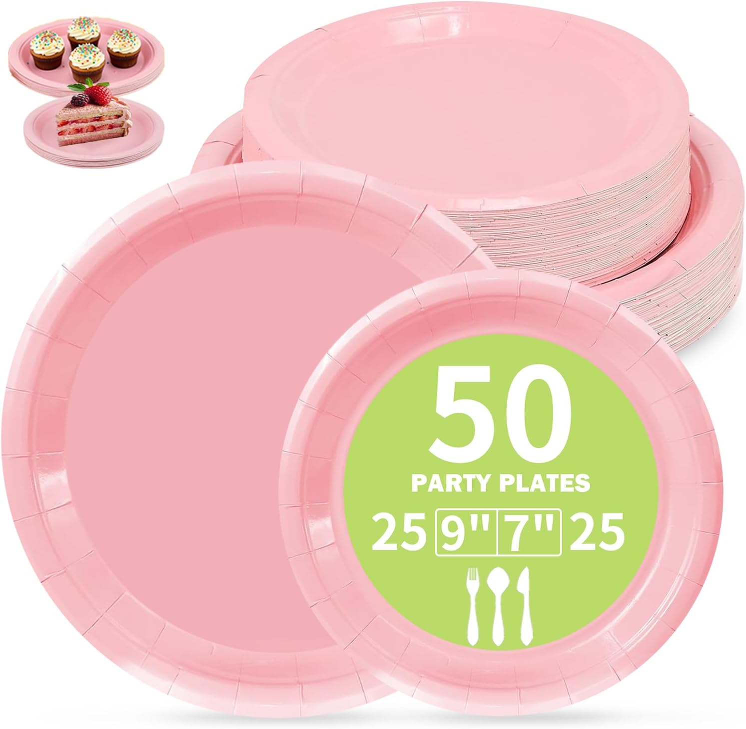 LIYH 60 Pcs Pink and Gold Plastic Plates – Disposable Pink Party Plates, Dessert & Dinner Plate, Baby Shower Bridal Shower Floral Fairy Plate for Birthday Tea Party just $12.01 – save 51%!