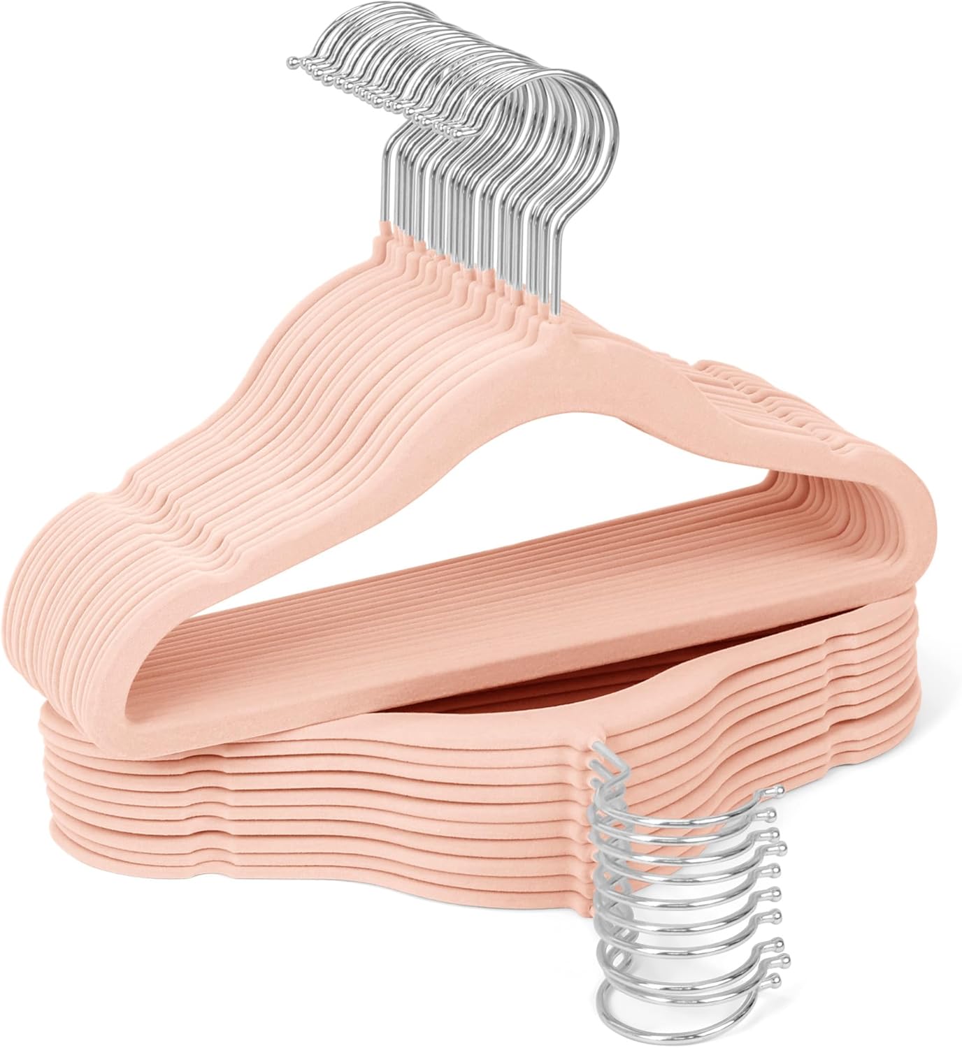 SONGMICS Velvet Hangers 50 Pack, Non-Slip Clothes Hangers, 17 x 8.3 Inches, Coat Hangers with Wide Shoulder Notches, Pants Bar, 360° Swivel Hook, Space-Saving, for Closet, Coral Pink UCRF039R01 just $18.89 – Save 30%!