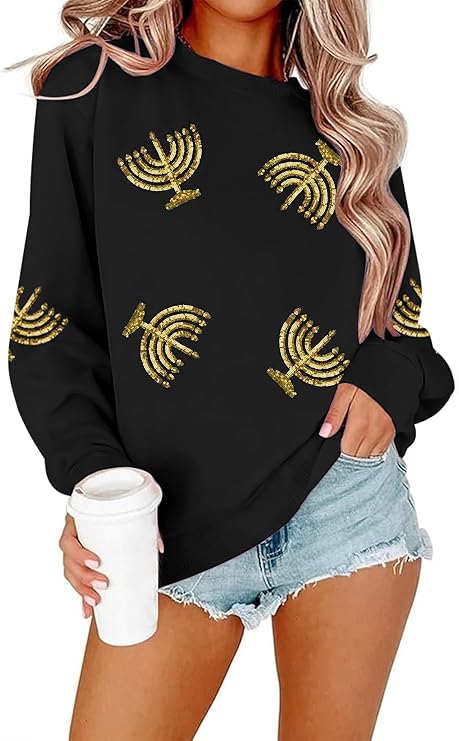 Hanukkah Sweatshirt Women Ugly Hanukkah Sweater Sequins just $27.99 – $33.99!