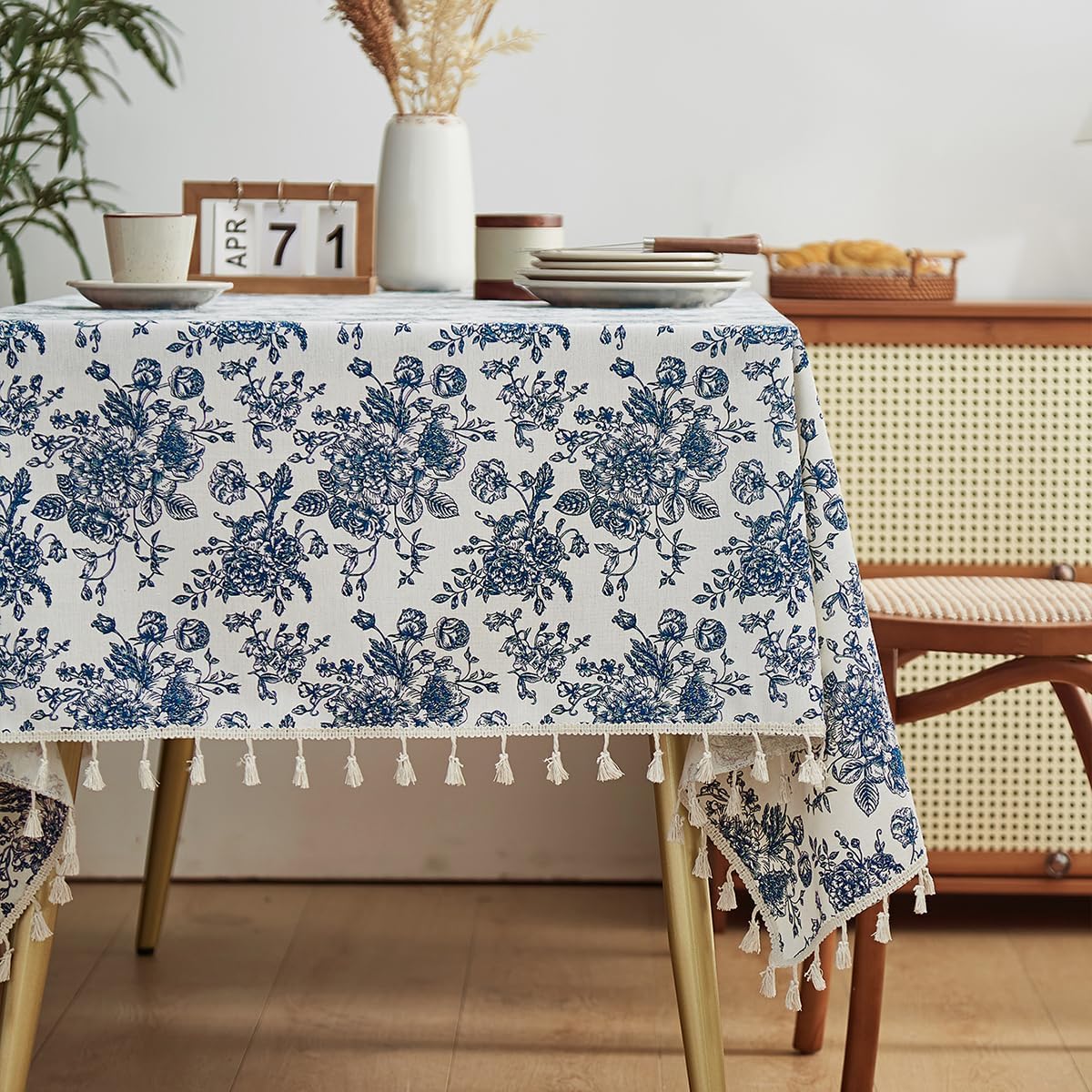 Bohemian Style Colorful Cotton Linen Tassels Geometry Table Cloth, Aztec Printing Rectangular Square Tablecloth for Waterproof Kitchen Dining, Party, Ruffled (60 “x86) Little Blue Flower just $6.49 – Save 50%!