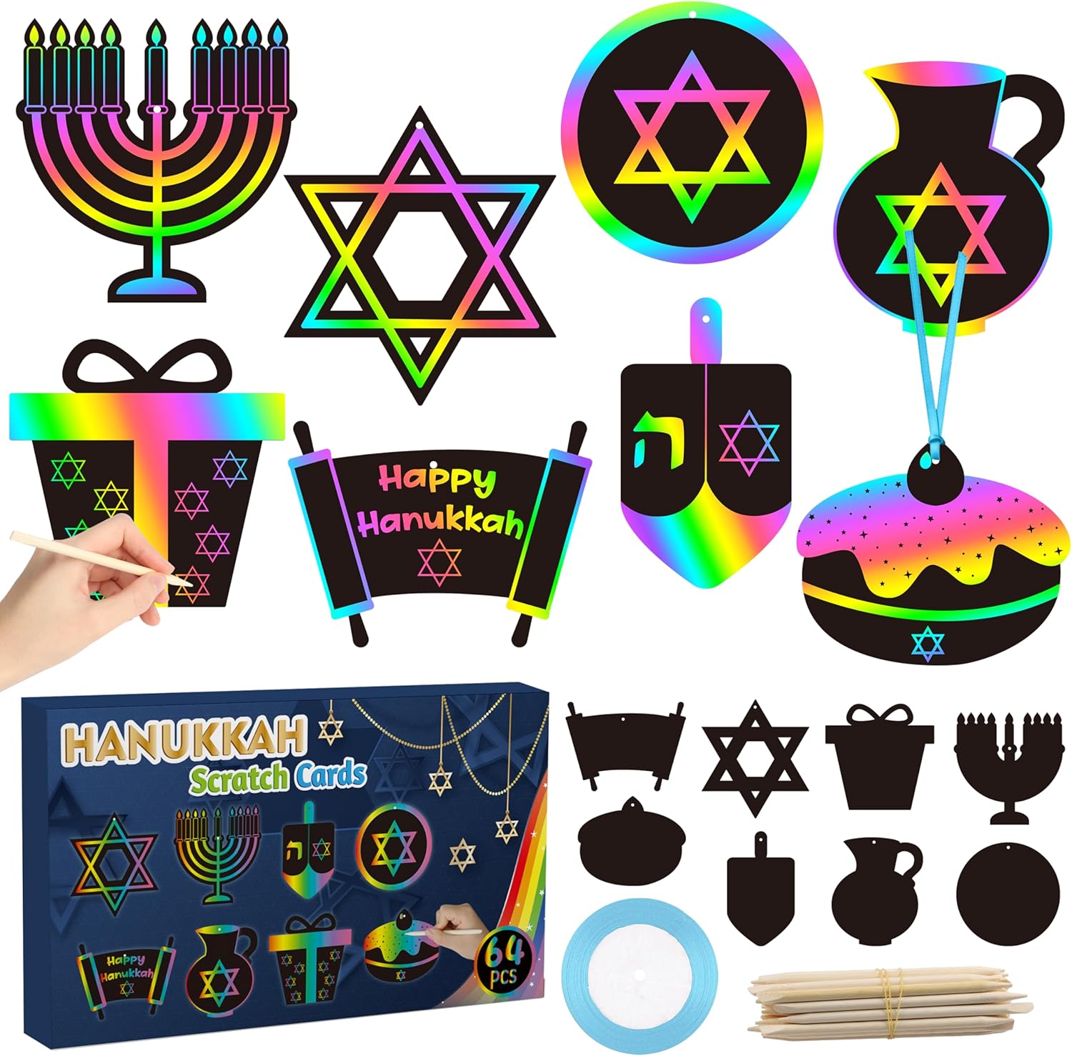 BeYumi 64Pcs Hanukkah Scratch Cards Gift Set for Kids DIY Magic Rainbow Chanukkah Scratch Art just $6.39!