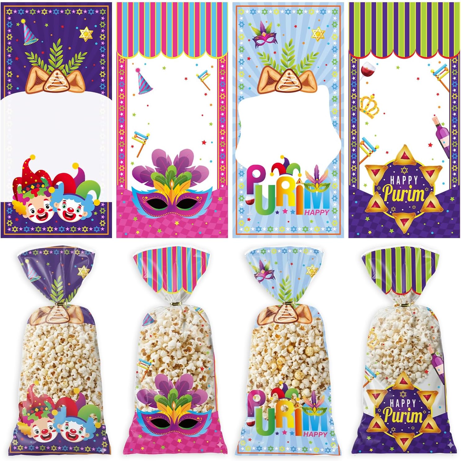 Falueqg Happy Purim Cellophane Treat Bags – 100 Pcs just $9.99!