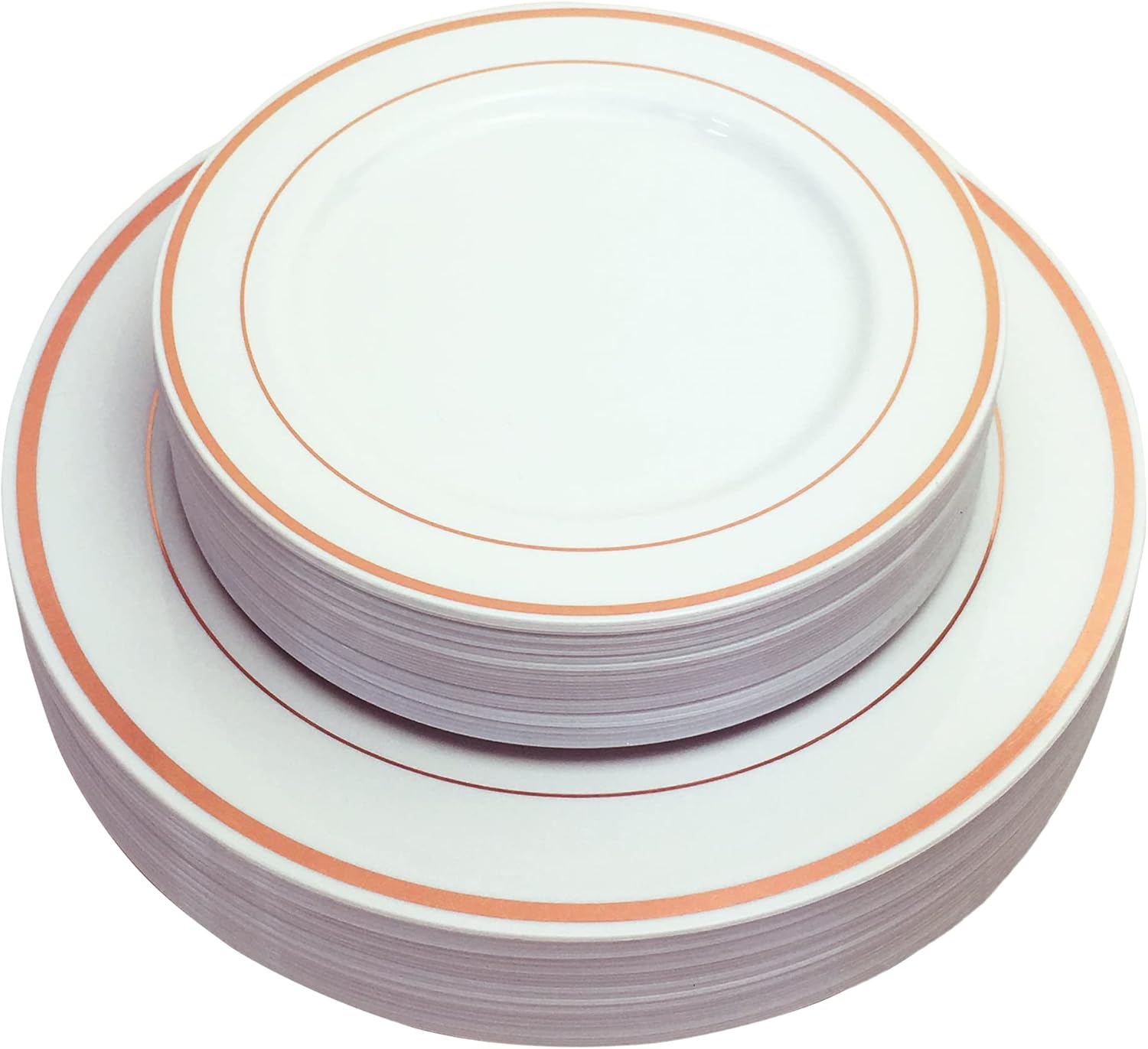 100 Piece Plastic Party Plates White with Rose Gold Lace Design 50 Premium Heavy Duty 10.25 Inch Dinner Plates and 50 Disposable 7.5 Inch Dessert Appetizer Plates as low as $28.49 with Subscribe & Save! Just $29.99 one-time purchase.