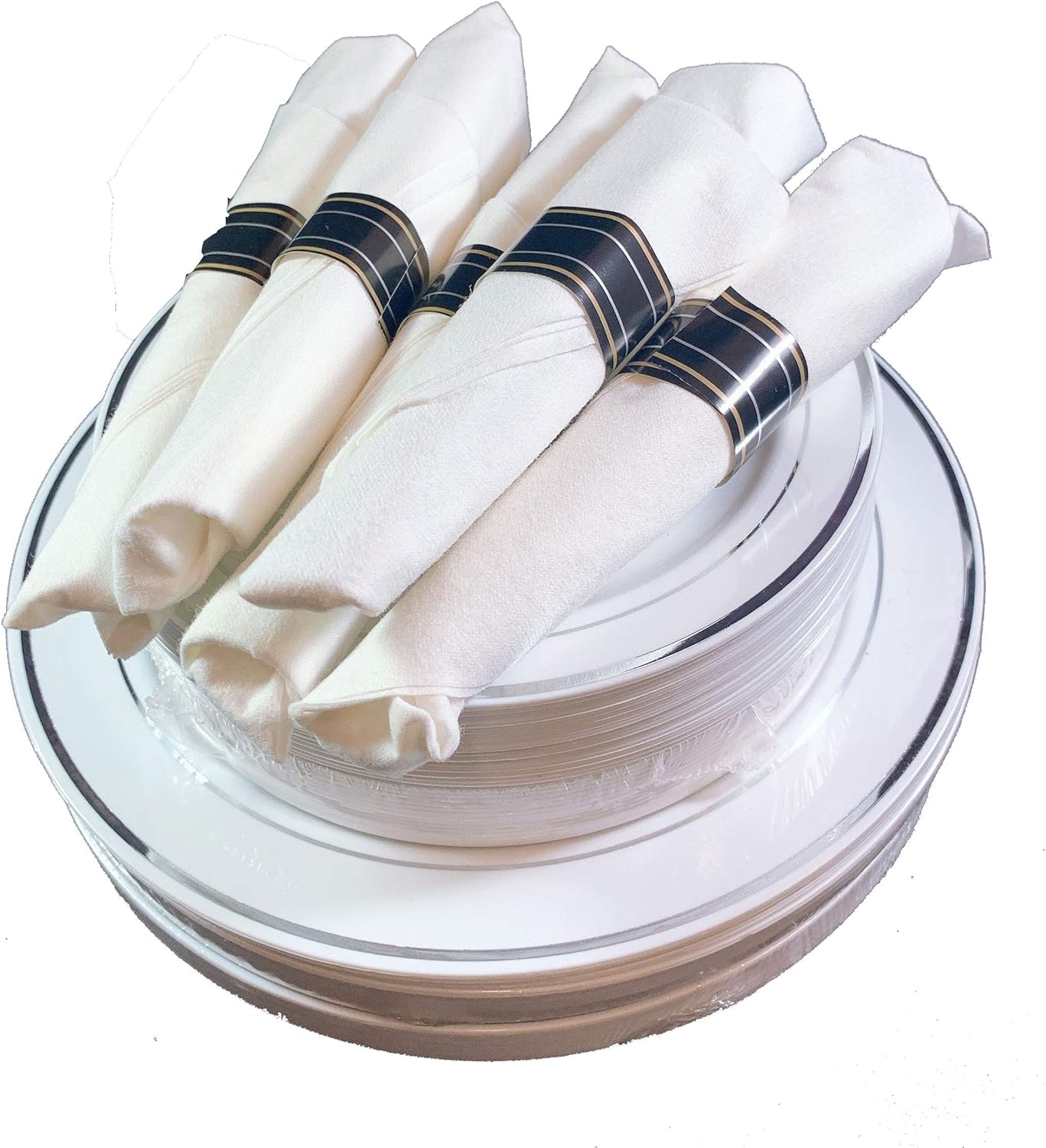 Disposable Plastic Party Plates with Napkin Rolls and Cutlery Sets for 20 guests (Silver Accents) just $28.99!