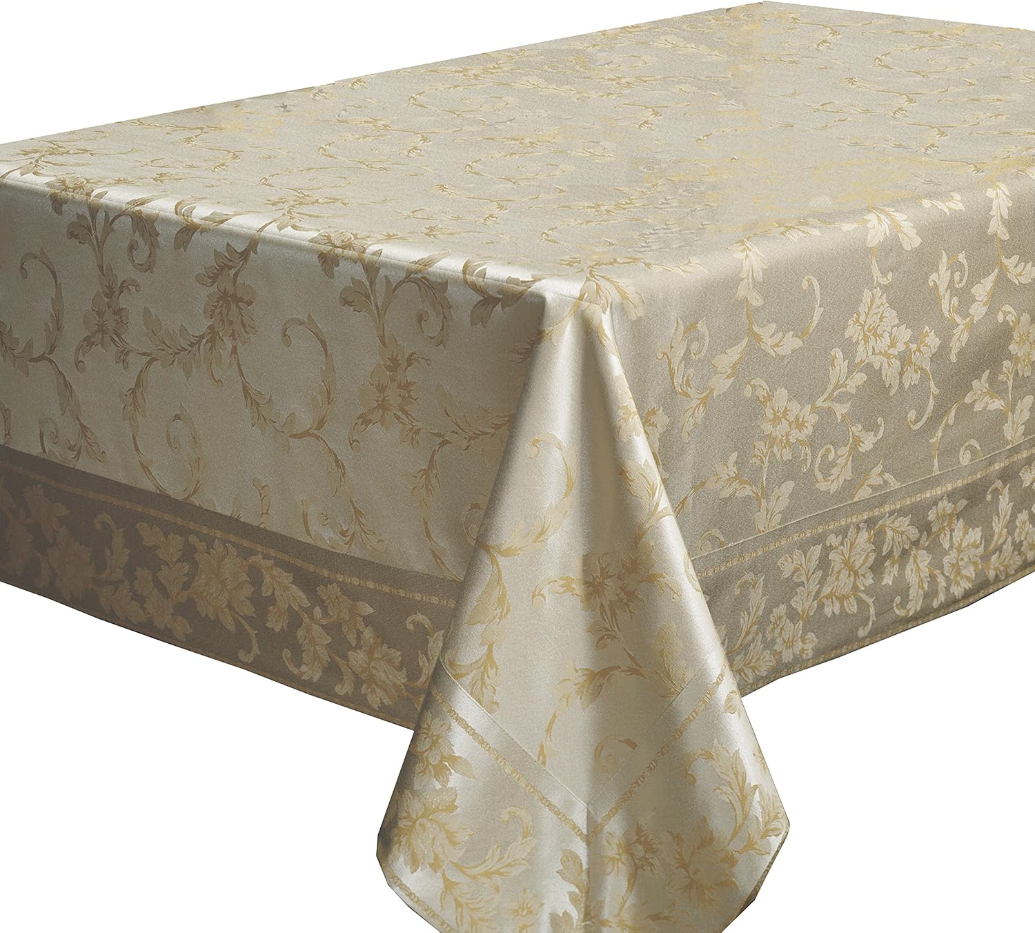 Benson Mills Twinkle Leaf Metallic Table cloth, 60-INCH by 84-INCH, Ivory/Gold just $8.71!