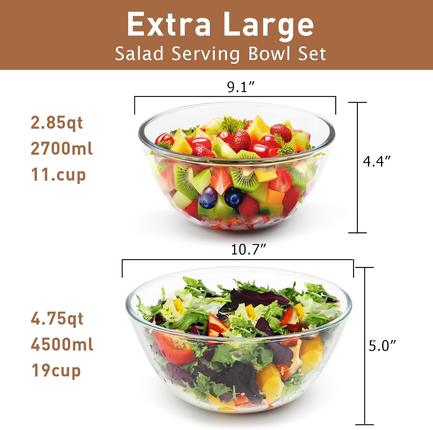 Extra Large Glass Salad Bowl Set with Acacia Wood Salad Serving Utensils (2 Bowls + Salad Servers) just $19.99 – Save 50%!