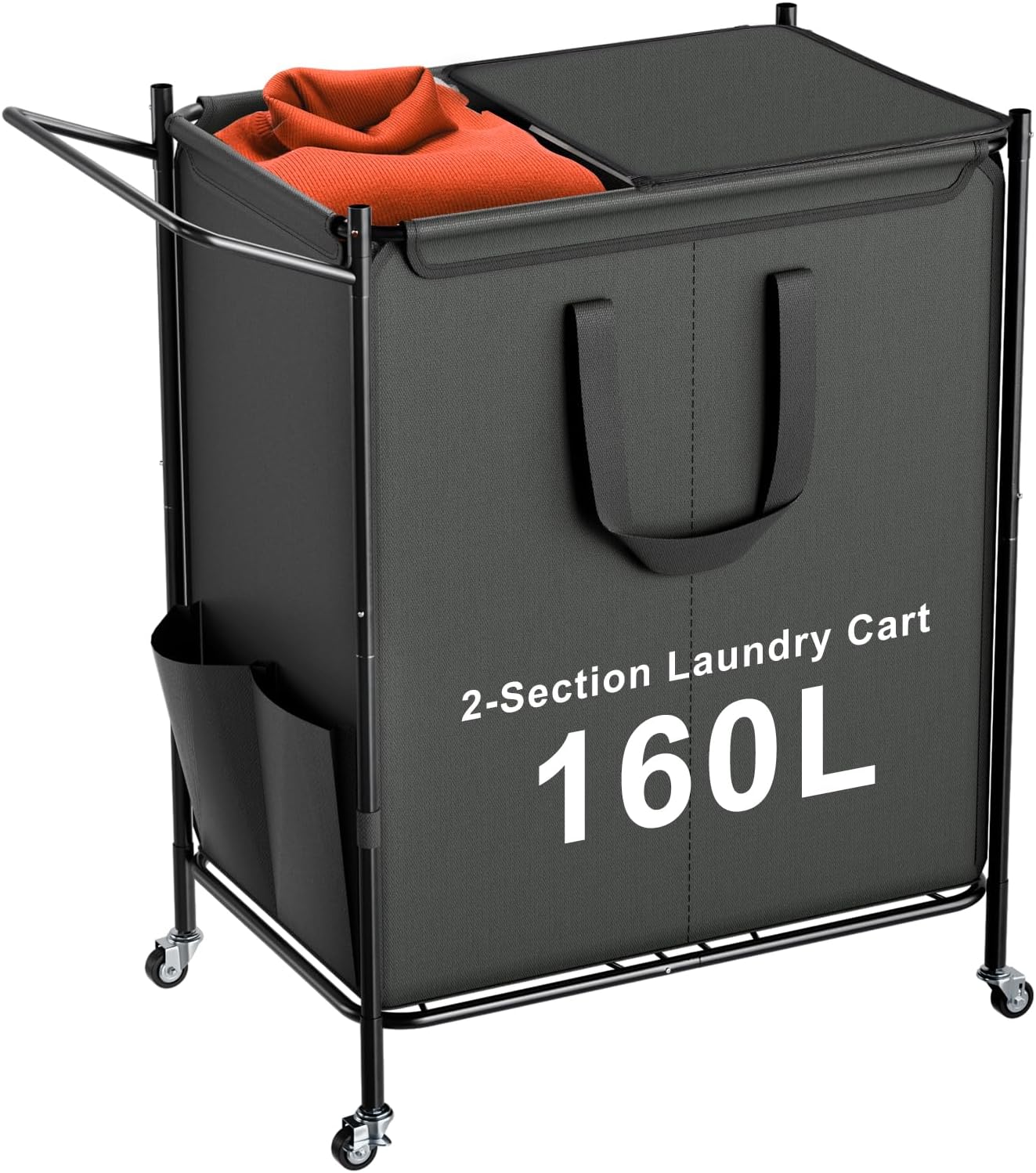 Laundry Basket with Wheels, 2-Section Rolling Laundry Hamper with Removable Liner, 42 Gallons (160L) Laundry Sorter Cart, Clothes Hamper Sturdy Metal Frame with Handle, Effortless Movement just $19.99 – Save 50%! 2 Colors