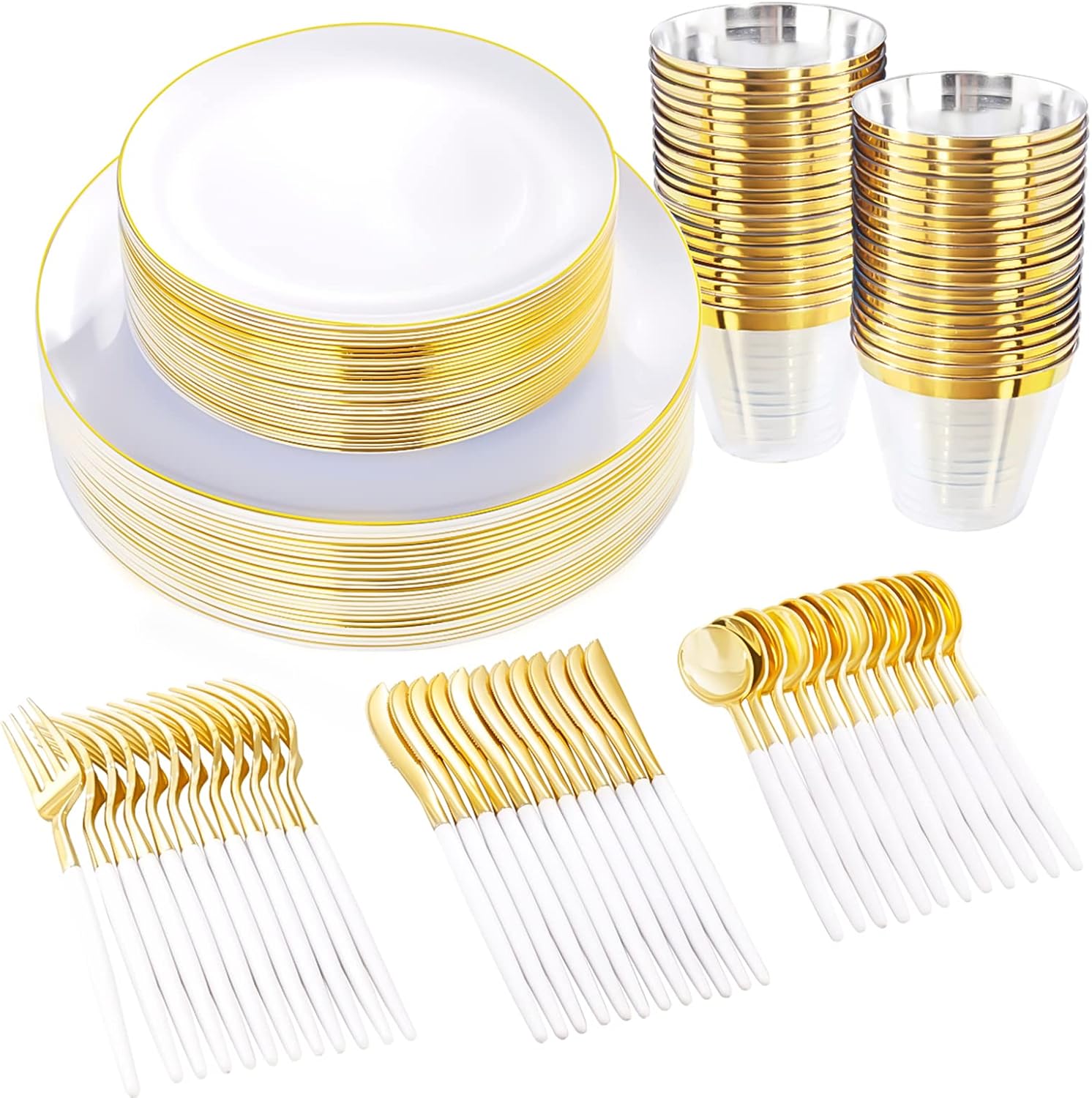 IYH 180 Pcs Gold Plastic Dinnerware Set – White Plastic Plates with Gold Rim,Disposable Utensils with White Handle,Cups Suit for Wedding Party Birthday 30 Guests just $22.99 – Save 50%!