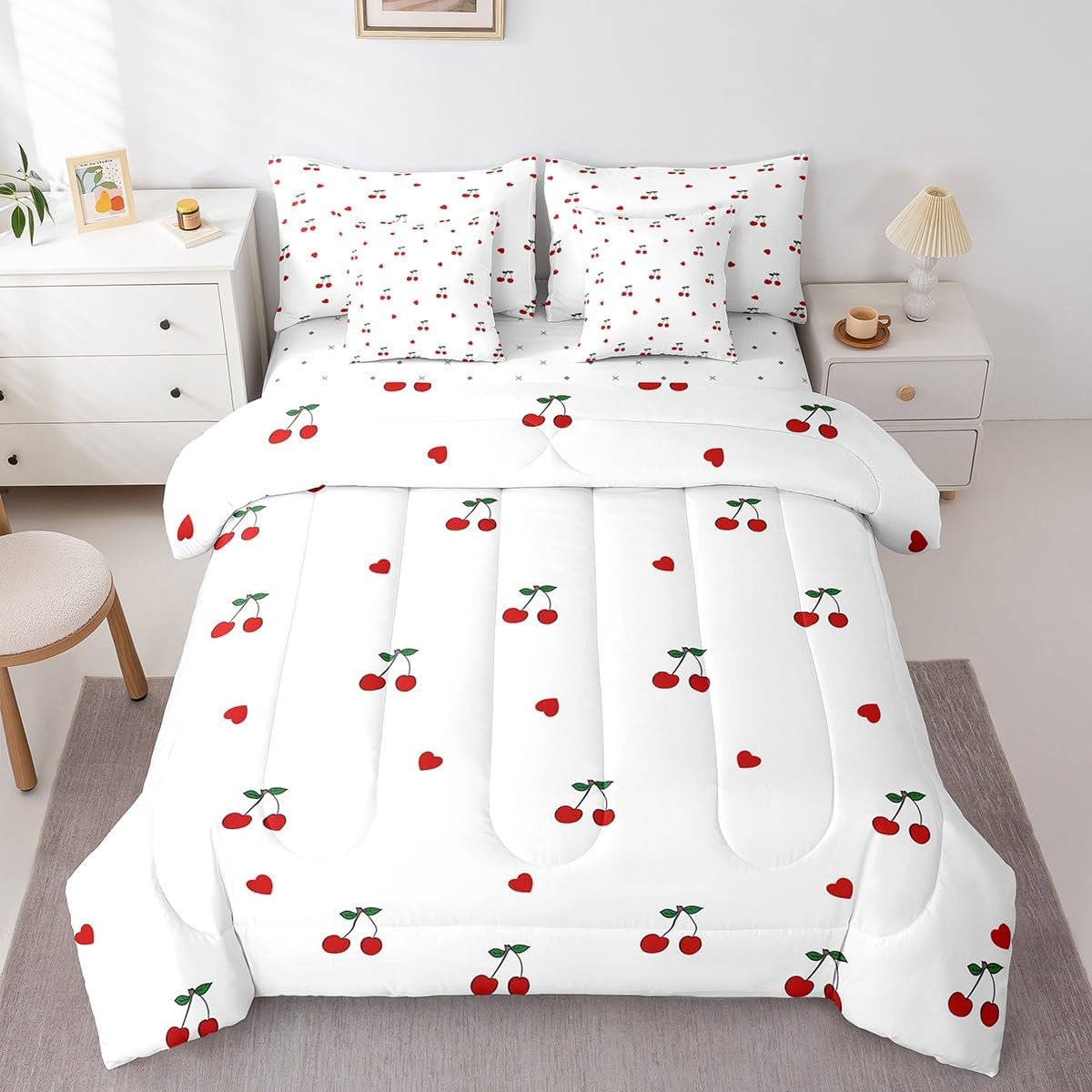 Erosebridal Kids Red Cherry 7 Piece Bedding Set Twin Size,Cherry Pattern Bed in a Bag,Yummy Fruit Bed Set Includes Comforter, Sheet Set, Pillowcases & Pillow Covers All Season Bedroom Decor for $52.99 – 50% with promo code VBEW6ULS = just $26.49!